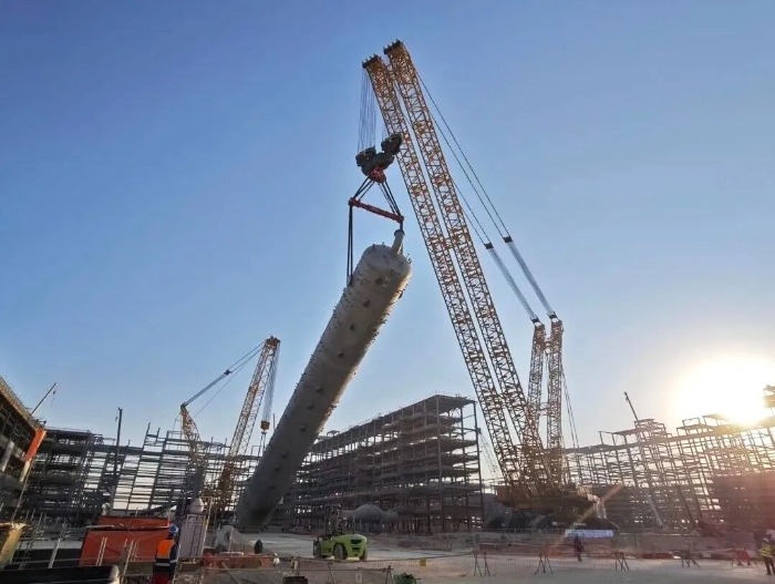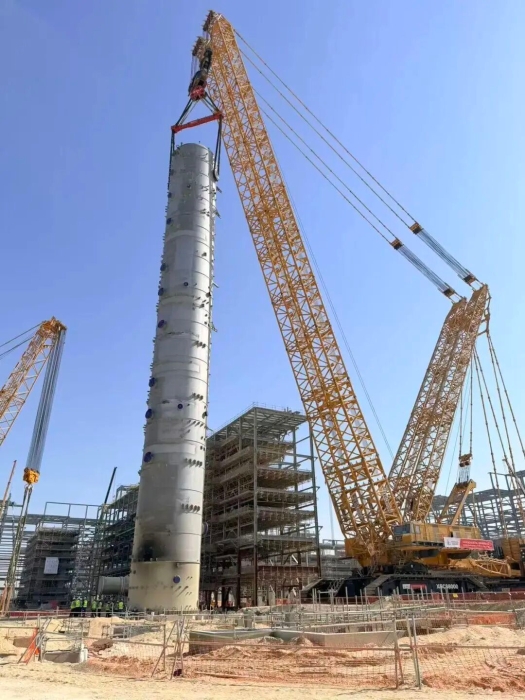 此次吊裝的塔器體積龐大、結(jié)構(gòu)復(fù)雜,加之當(dāng)?shù)仫L(fēng)速多變、沙塵頻發(fā),對高空作業(yè)的精度與設(shè)備穩(wěn)定性構(gòu)成嚴(yán)峻考驗(yàn)。
