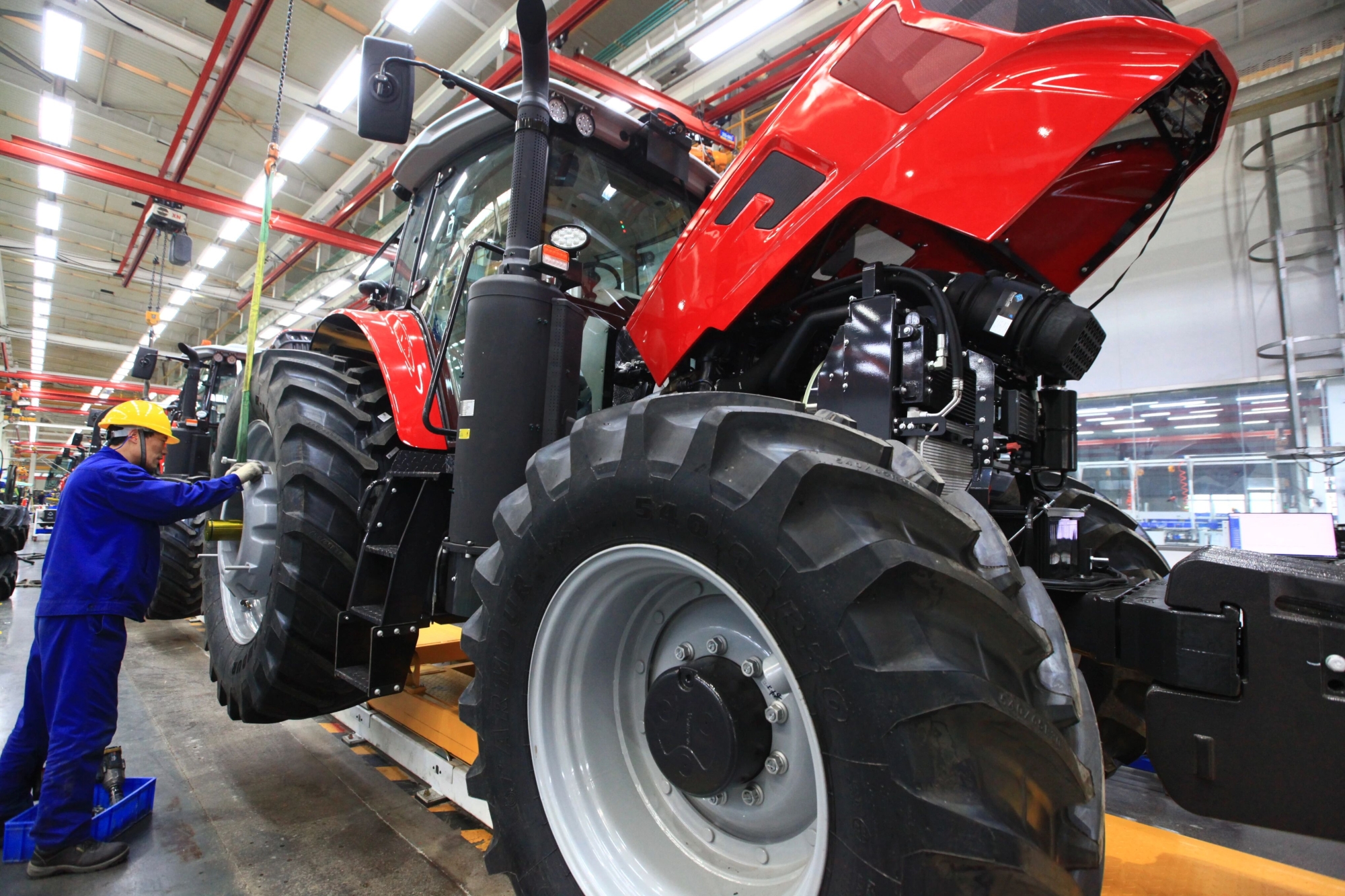 徐工農(nóng)業(yè)機械智能制造基地項目一期收獲機、拖拉機產(chǎn)線已順利投產(chǎn),二期正在進行規(guī)劃方案設(shè)計。宋樂偉、沈峻峰走進展廳,了解企業(yè)“十五五”發(fā)展規(guī)劃、核心零部件研發(fā)等情況,實地察看拖拉機總裝、變速箱裝配、底盤裝配、駕駛室裝配等生產(chǎn)線,勉勵企業(yè)依托徐工協(xié)同創(chuàng)新優(yōu)勢,聚焦核心技術(shù)突破,加大產(chǎn)品研發(fā)投入,做大做強農(nóng)業(yè)機械產(chǎn)業(yè)板塊,為推進農(nóng)業(yè)現(xiàn)代化貢獻徐工力量。