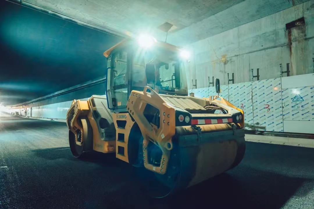 徐工成套高端油面設(shè)備,憑借引領(lǐng)行業(yè)的產(chǎn)品技術(shù)實力,為媽灣跨海通道的道路建設(shè)提供了成套化的高效施工解決方案,確保隧道路面施工作業(yè)圓滿實施。