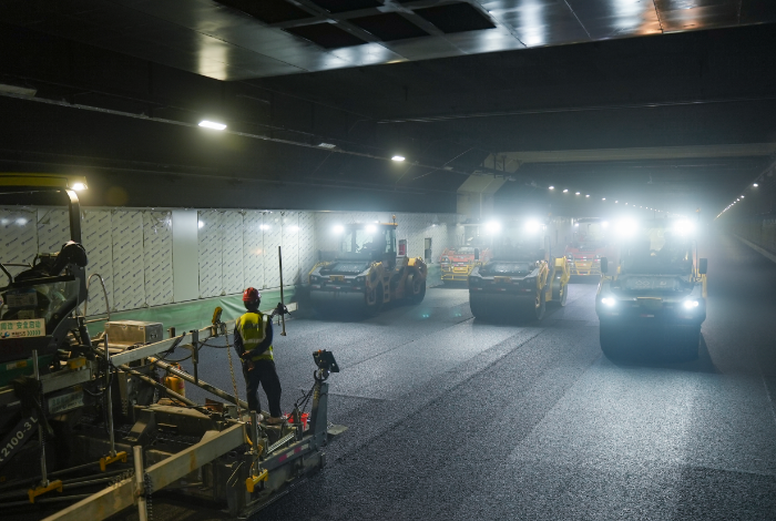業(yè)內(nèi)率先采用“能級”概念,優(yōu)化振蕩參數(shù),徐工XD135TOSIV振蕩壓路機可將鋪筑材料生產(chǎn)后1小時內(nèi)壓實,效率更高;同時,采用振蕩壓實技術(shù),僅產(chǎn)生水平(切向)方向的振動,對機器兩側(cè)的振動僅為傳統(tǒng)振動壓路機的15%,大幅減輕對沉管隧道的影響。