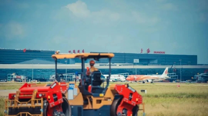 徐工雙鋼輪壓路機(jī)與上海虹橋機(jī)場同框