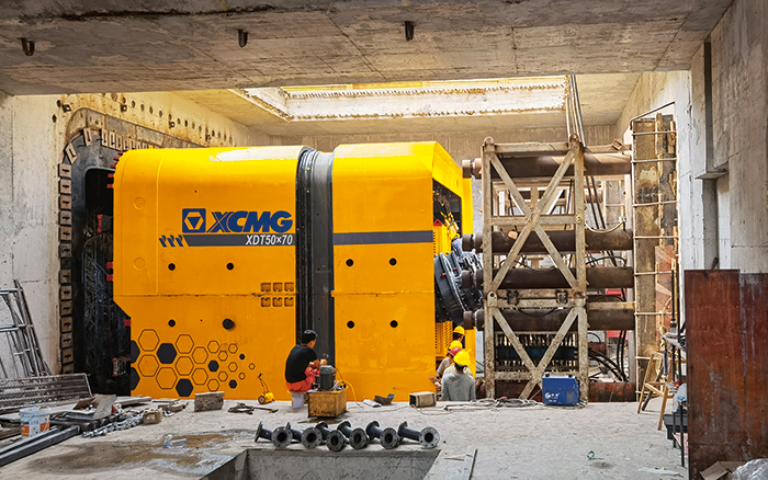 鄭州機(jī)場(chǎng)至許昌市域鐵路工程鄭州段土建施工02標(biāo)段,寺東孫站1號(hào)出入口目前正在緊張進(jìn)行中,參建施工的徐工XDT50*70矩形頂管機(jī)屬于首秀。