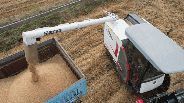 面對雨后潮濕泥濘的地面和田里倒伏的麥穗,徐工XR730收獲機憑借著底盤良好的通過性能和優(yōu)異的收割倒伏能力,一趟趟穿行在亟待收獲的麥田中,高效完成一畝又一畝夏糧搶收作業(yè)。