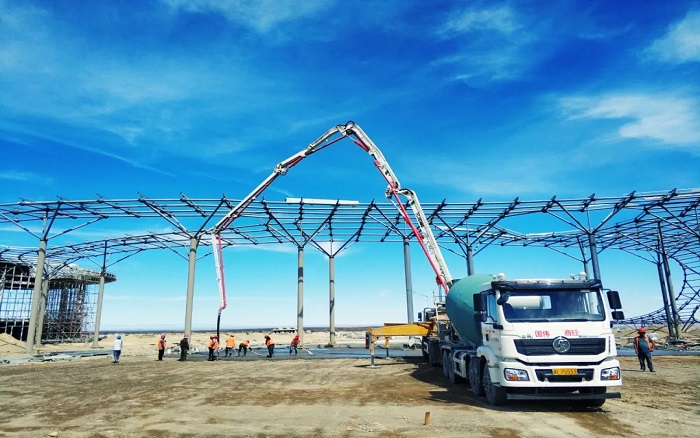 賀蘭山下,塞上江南。近日,中寧±800千伏換流站廠房施工現(xiàn)場,徐工兩橋37米泵車靈動(dòng)作業(yè),閃耀寧夏大地。