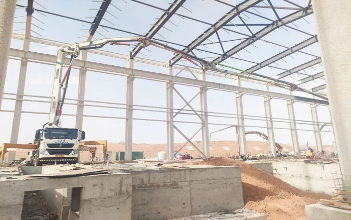 項(xiàng)目中后期以地面作業(yè)為主,鋼結(jié)構(gòu)廠房受限于空間操作,對(duì)設(shè)備的動(dòng)力和靈活提出了較高要求。最小起臂高度僅7.8米的徐工HB37V,靈活的通過性和操控性讓施工作業(yè)提質(zhì)增速,為項(xiàng)目施工破解難題。