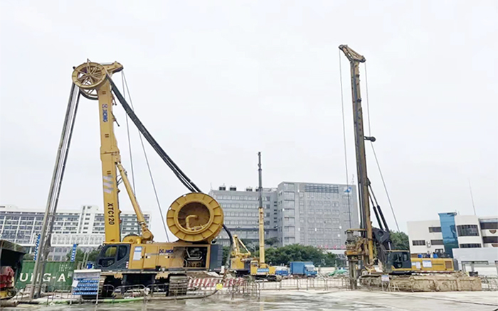 為確保施工順利,項(xiàng)目方根據(jù)地質(zhì)特點(diǎn),投入了8臺徐工設(shè)備,配合進(jìn)行砂層、入巖段施工。