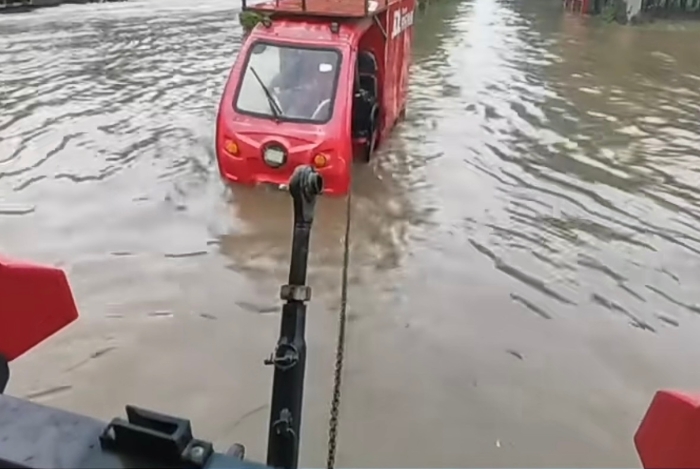 憑借產(chǎn)品動力強勁、牽引力大等優(yōu)勢,迅速幫助涉水車輛脫險。徐工拖拉機將部分受困車輛和物資轉移至安全地帶,為災區(qū)人民提供了及時有效 的幫助。
