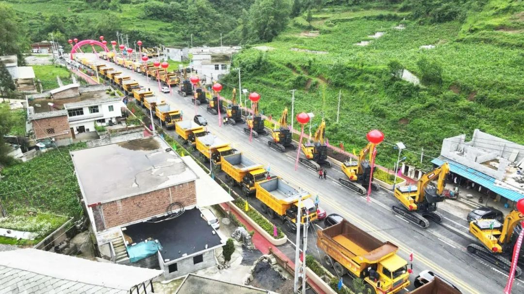 貴州省畢節(jié)市,近20臺徐工38噸級大挖一字排開,鐵臂擎空,恢弘壯觀。