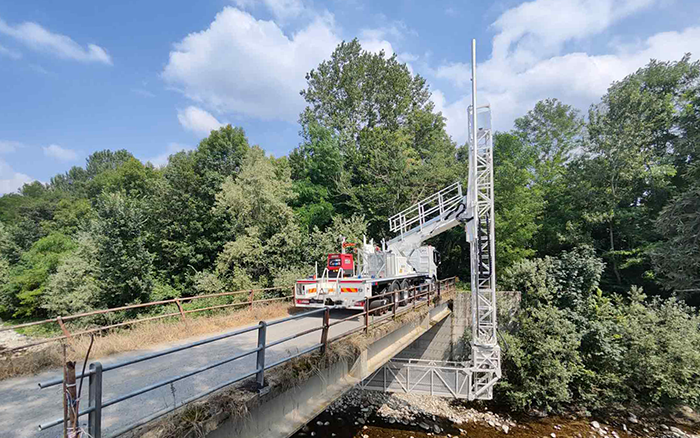 風景秀麗的阿爾卑斯山前,一個白色臂膀半“摟”住歷史悠久的歐洲古橋……占據(jù)這張靚麗風景照C位的,是正在進行橋梁檢修維護的徐工橋梁檢測車。
