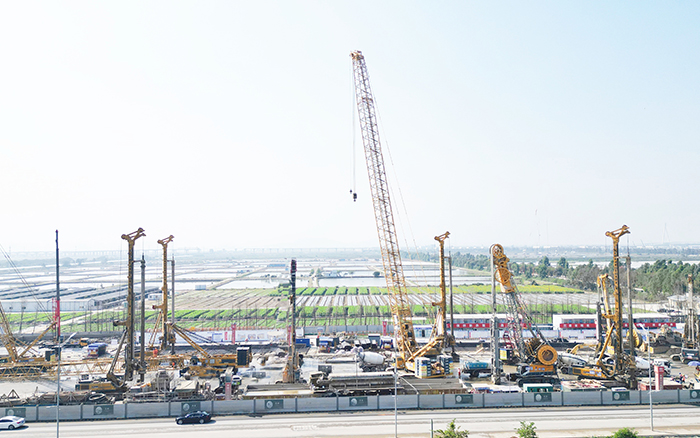 該項(xiàng)目線(xiàn)路全長(zhǎng)47.6km,巖層主要為混合花崗巖,硬度在100-300Mpa。為確保工程順利施工,項(xiàng)目方根據(jù)現(xiàn)場(chǎng)地質(zhì)情況投入徐工雙輪銑槽機(jī)、連續(xù)墻液壓抓斗、旋挖鉆機(jī)配合進(jìn)行砂層、入巖段施工。