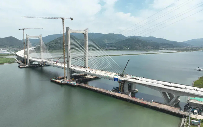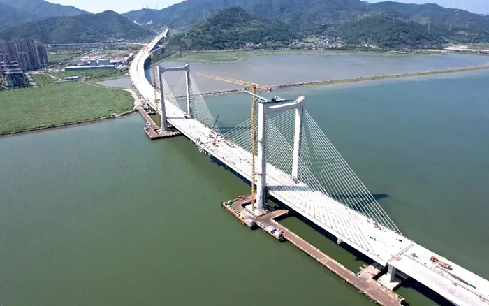 六橫公路大橋一期工程主要為陸上高速公路接線及疏港公路工程,作為一期工程關鍵施工節(jié)點——梅山水道橋,在6臺徐工塔機的全力協(xié)作下,大橋邊跨順利合龍。