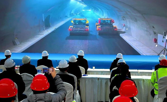 來(lái)看徐工智慧→重慶首次山區(qū)特長(zhǎng)隧道無(wú)人攤鋪施工