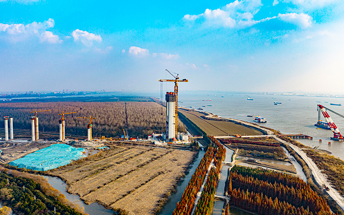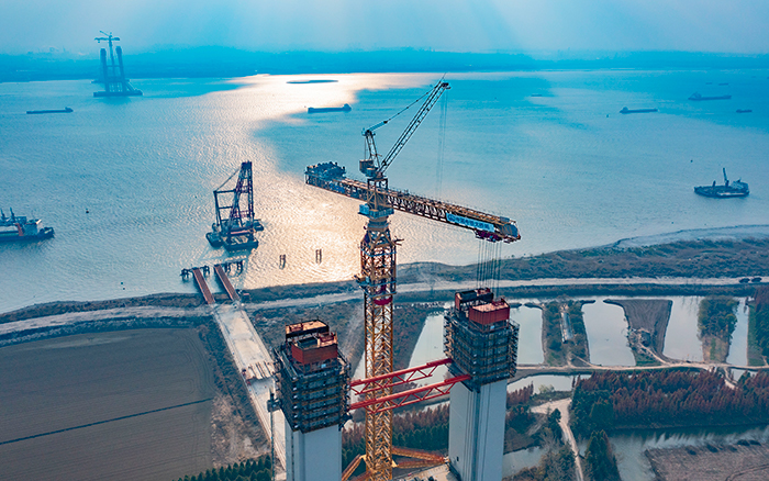 張靖皋長(zhǎng)江大橋蜿蜒向前
