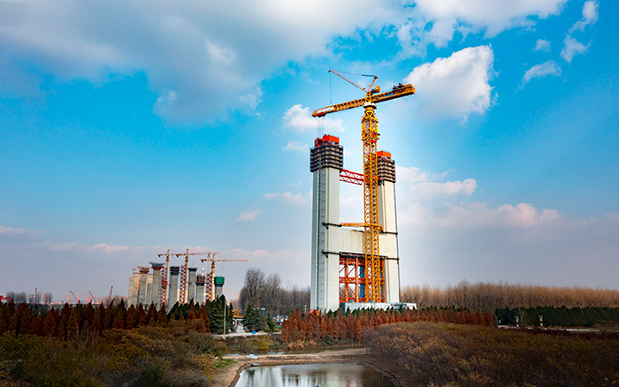 “北主塔分為三十個(gè)節(jié)段建設(shè),橋塔2至30節(jié)段中最重的一個(gè)達(dá)522噸,必須使用塔吊平穩(wěn)吊裝和拼接,確保毫米級(jí)精度?!表?xiàng)目負(fù)責(zé)人介紹。