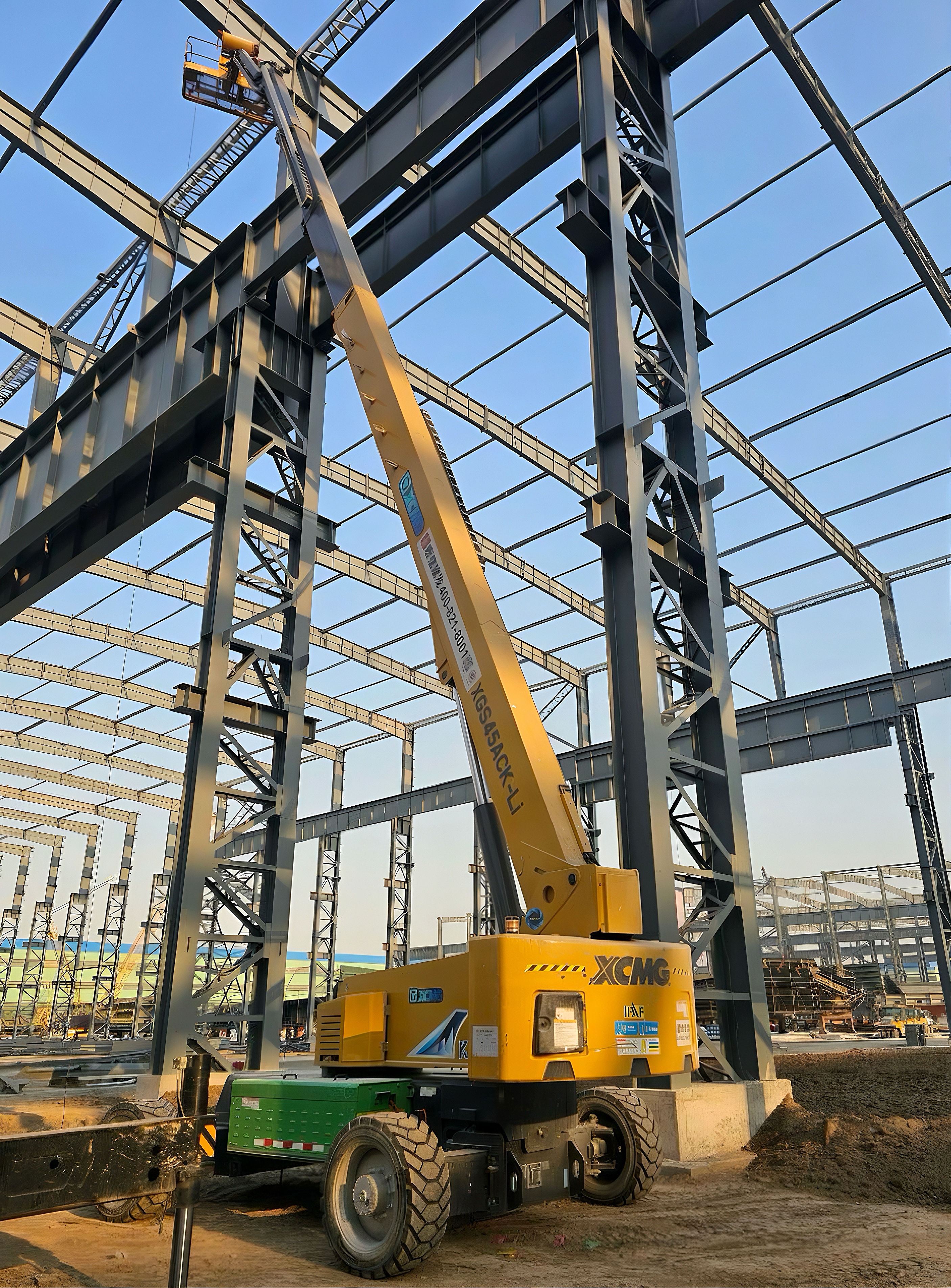 面對(duì)車間跨度大、作業(yè)面復(fù)雜等難題,兩臺(tái)產(chǎn)品展現(xiàn)超長(zhǎng)臂展,精準(zhǔn)覆蓋高空盲區(qū),攻克了廠房鋼結(jié)構(gòu)焊接、頂棚管線鋪設(shè)等高難度施工挑戰(zhàn);低半徑轉(zhuǎn)彎的特性使車輛在廠房通道靈活穿梭,智能安全系統(tǒng)全程“護(hù)航”,大幅提高了施工作業(yè)效率。現(xiàn)場(chǎng)作業(yè)人員紛紛點(diǎn)贊:“電動(dòng)化+高米數(shù)的組合,完美匹配智能化車間綠色、高效的施工需求!”