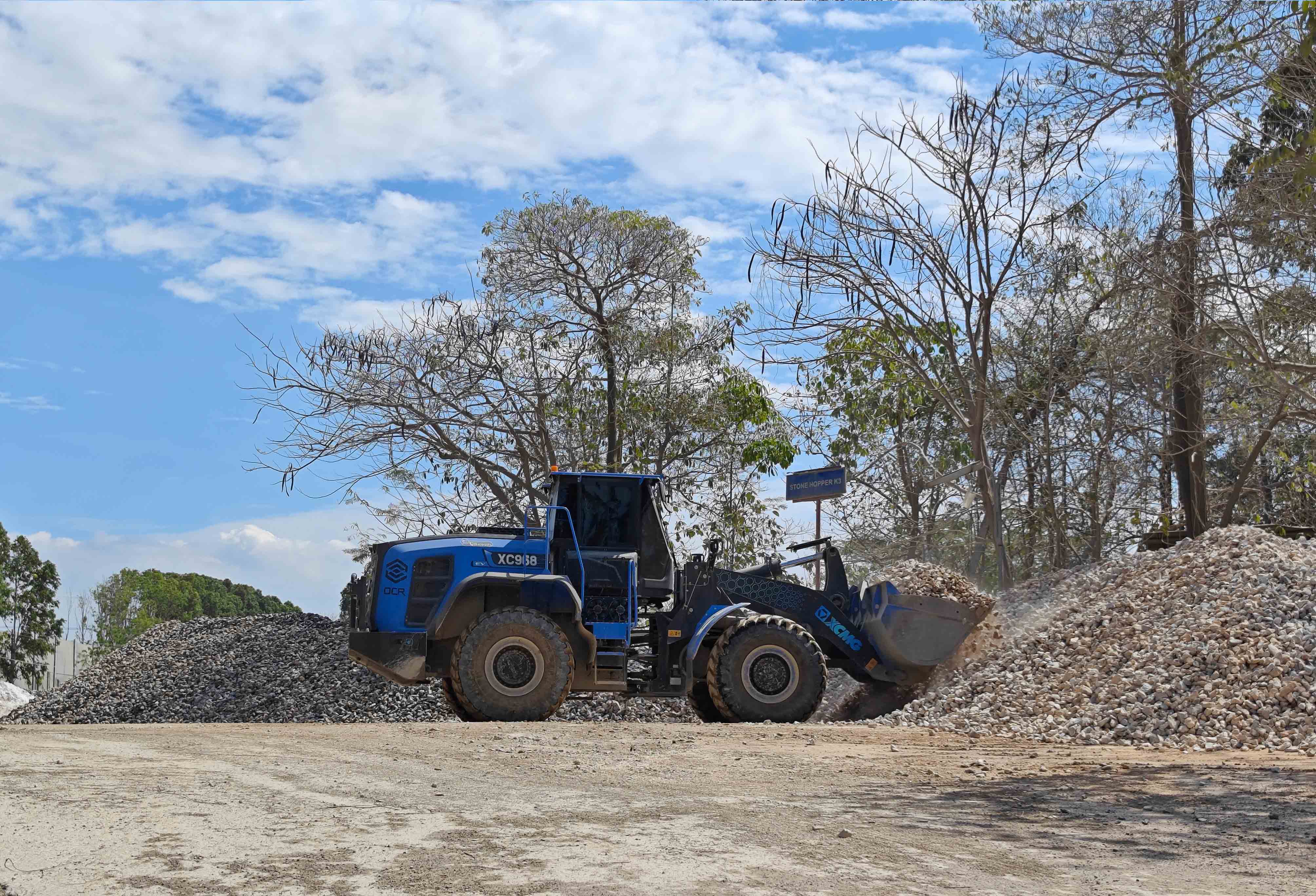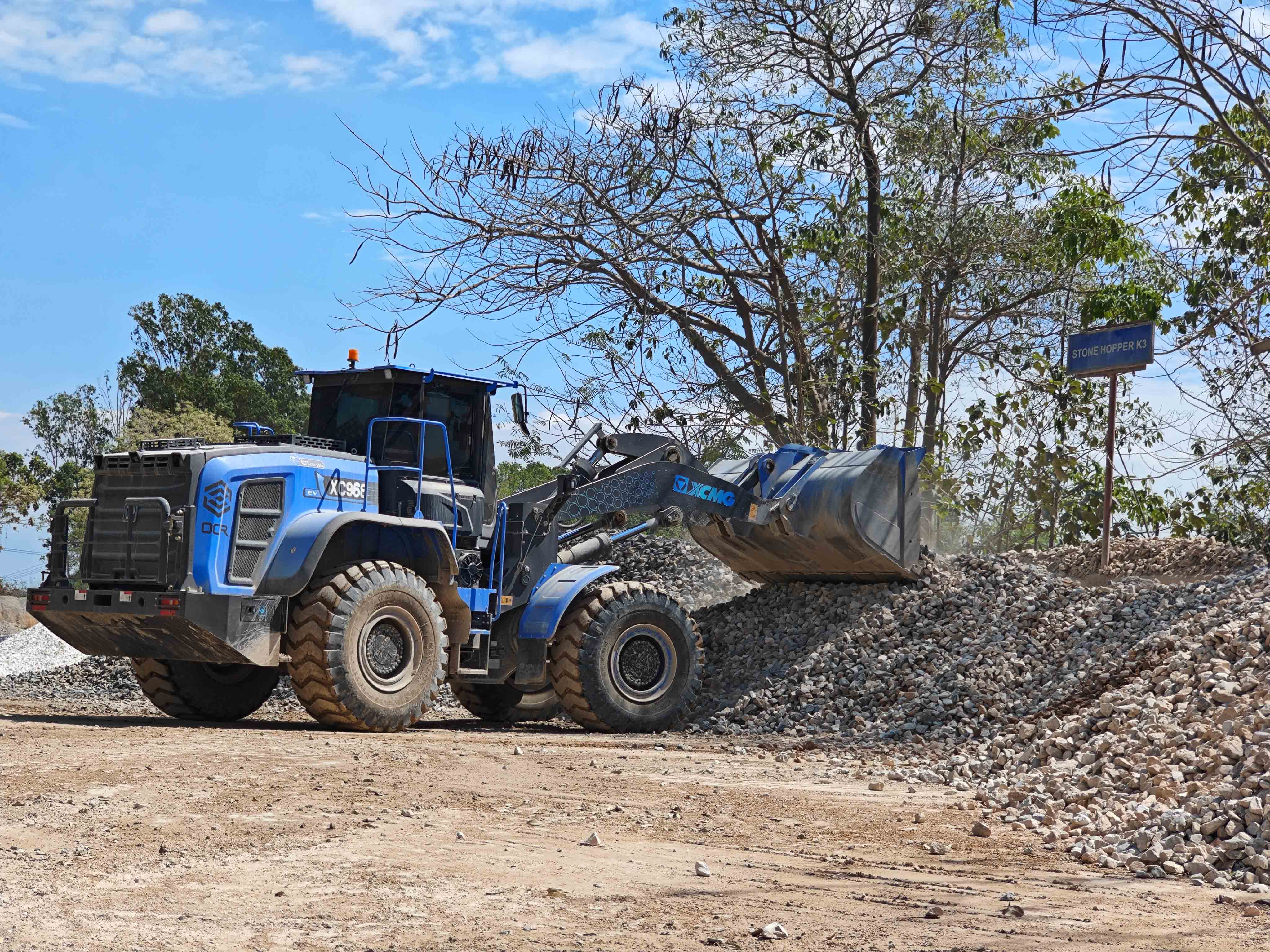 礦山生產(chǎn),作業(yè)時(shí)間長,物料堅(jiān)硬密度高,道路崎嶇,工況較為險(xiǎn)重。徐工XC968-EV純電動(dòng)裝載機(jī)的新能源優(yōu)勢,在礦道端的鏟裝作業(yè)優(yōu)勢非常明顯,相對密閉空間內(nèi),零排放、低噪音對工段一起作業(yè)的戶外工作人員的健康非常友好。