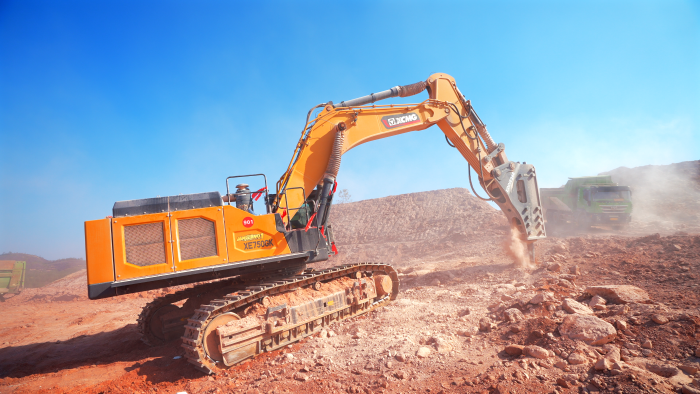 徐工技術(shù)團(tuán)隊(duì)實(shí)地勘察后,為客戶制定了一套“組合拳”打法——先用兩臺XE750GK搭配248型破碎錘實(shí)施“梅花樁”破碎工法,再用大鉤子把巖石鉤松。