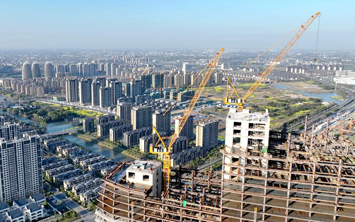 伴隨著江南煙雨的氤氳水汽,由中能建建筑集團EPC總承包的世界首個大象形狀的五星級酒店——南潯大象酒店,正逐漸成形。兩臺徐工XGL630-50S動臂式塔機矗立在此,給江南煙雨帶來了一抹溫暖亮麗的色彩。