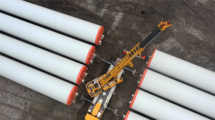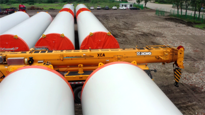 在繁忙的港口,長40米、重100噸的風(fēng)力發(fā)電塔筒擺放整齊,等待著一次關(guān)鍵的騰挪,吊裝空間局促——塔筒擺放距離較近,蕩距空間嚴(yán)重受限,這是對起重機(jī)性能與操控的極致考驗(yàn)。徐工G2代起重機(jī)XCA200G8-1從容入場,以實(shí)力宣告:空間,絕非限制。