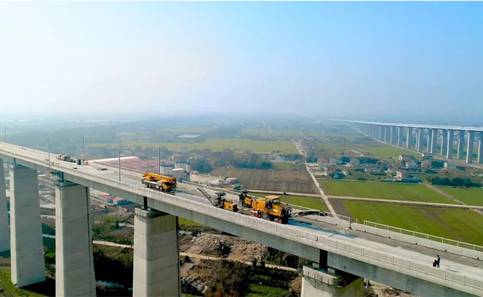 通過毫米級精度控制技術(shù),實(shí)現(xiàn)了復(fù)雜橋區(qū)多場景施工的高效協(xié)同,有效提升了橋面平整度與施工效率,確保了全球最大跨度斜拉橋的鋪裝質(zhì)量。