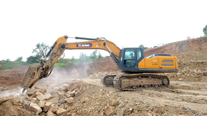 徐工挖掘機(jī)打破碎很有勁,駕駛舒適。我們?cè)谶@個(gè)項(xiàng)目上主要做巨石破碎工作,徐工的設(shè)備在回轉(zhuǎn)、破碎等動(dòng)作上都表現(xiàn)的很優(yōu)秀,屬具更換很便捷,底盤比其他品牌的同噸位設(shè)備都要穩(wěn)。