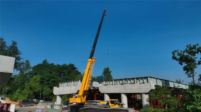 湖北通修高速公路建設(shè)現(xiàn)場,徐工G2代50噸新能源起重機正展露鋒芒。14米長、重達1噸的橋梁豎梁凌空而起,500斤橫梁于視野盲區(qū)精準對位——這是對起重機微動性與操控性的極限考驗。
