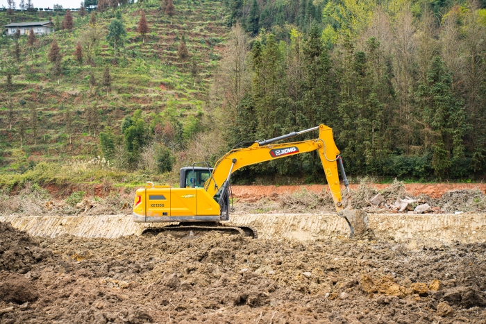 “水田黏土多、修坡量大,徐工設(shè)備的施工效率顯著?!必?fù)責(zé)人介紹稱,徐工發(fā)動機功率大,干活有勁,而且平地性能好,刷坡、平地的速度比同噸級產(chǎn)品快10%以上。