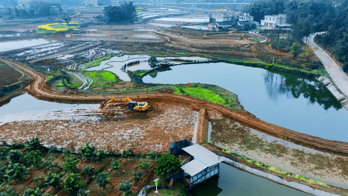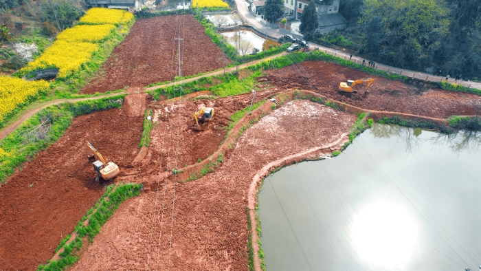 繼續(xù)向東,這里是萬里長江第一城——宜賓,在宜賓江安縣陽春鎮(zhèn),5000畝高標(biāo)準(zhǔn)農(nóng)田建設(shè)進(jìn)入尾聲,項目高峰期投入30余臺徐工挖掘機。