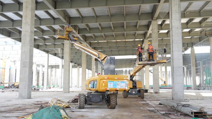 近日,在總投資550億的合肥國顯第8.6代AMOLED生產(chǎn)線項目主廠房內(nèi),20余臺徐工高空作業(yè)平臺在酷暑烈日下,呈現(xiàn)了一場精彩的“群車協(xié)奏”。