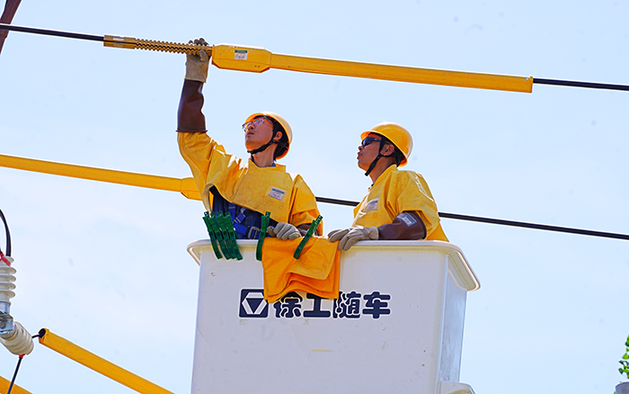 徐工 GKJH22A 絕緣斗臂車在此次作業(yè)中優(yōu)勢盡顯。其新型工作斗智能液壓發(fā)電技術,極大提升了發(fā)電可靠性,降低了液壓溫升,延長了系統(tǒng)壽命,發(fā)電噪聲的降低也為作業(yè)環(huán)境減少了干擾,讓工作人員能更清晰地溝通協(xié)作,連續(xù)作業(yè)時間的延長則有力保障了施工進度。