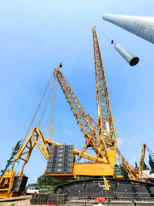 近日,山東大型風(fēng)電場迎來關(guān)鍵突破,徐工集團最新研發(fā)的千噸級風(fēng)電旗艦產(chǎn)品——首臺XLC15000M(1100噸級)履帶起重機正式投入實戰(zhàn),在華東新能源建設(shè)一線完成首次吊裝任務(wù)。