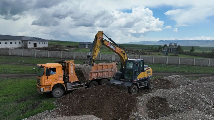 在被譽(yù)為“塞上江南”的西北地區(qū),王老板的事業(yè)迎來了“第二春”。他擁有的多臺(tái)徐工輪挖設(shè)備,活躍于各類綠化、修路及管網(wǎng)改造工程。王老板特別贊賞設(shè)備的靈活性:“輪挖(在這里)活多,它轉(zhuǎn)場(chǎng)方便?!逼渑鋫涞目鞊Q裝置更能快速切換不同屬具,靈活滿足多樣化施工需求。在海拔兩三千米的高原草場(chǎng),徐工XE150WD參與著歷史悠久的馬場(chǎng)建設(shè),進(jìn)行土石方開挖、回填與整平作業(yè)。雨季來臨時(shí),泥濘的草原常使運(yùn)輸車輛陷入困境,此時(shí)輪挖便化身搶險(xiǎn)“特種兵”,保障工程順利推進(jìn)。