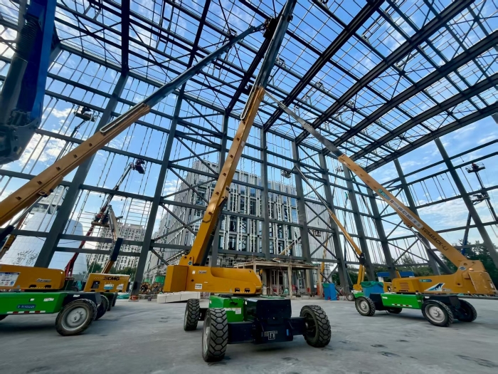 這些高空作業(yè)平臺構(gòu)成了施工主力,其卓越的高空穩(wěn)定性和精準(zhǔn)的微動性,為鋼結(jié)構(gòu)的高質(zhì)量焊接提供了堅(jiān)實(shí)可靠的作業(yè)平臺。它們的純電動動力確保了在密閉的廠房空間內(nèi)零排放,完全滿足了精密制造對于環(huán)境清潔度的要求,同時避免了焊接作業(yè)因尾氣污染而產(chǎn)生的質(zhì)量風(fēng)險。