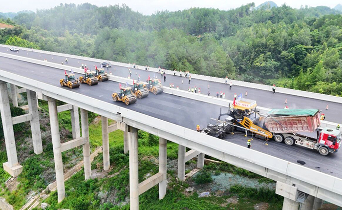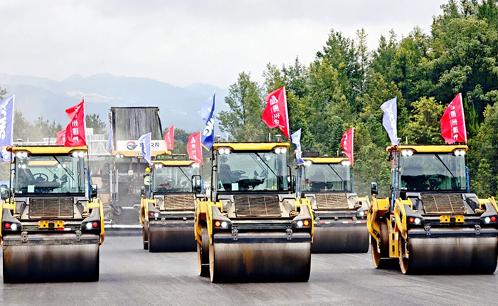 智慧施工管理平臺(tái)實(shí)時(shí)呈現(xiàn)碾壓軌跡、變速曲線、施工速度及溫度數(shù)據(jù)。攤鋪機(jī)高效輸分料系統(tǒng)適配超寬幅作業(yè),壓路機(jī)深入結(jié)構(gòu)層實(shí)現(xiàn)全維度壓實(shí),晝夜不間斷施工。
