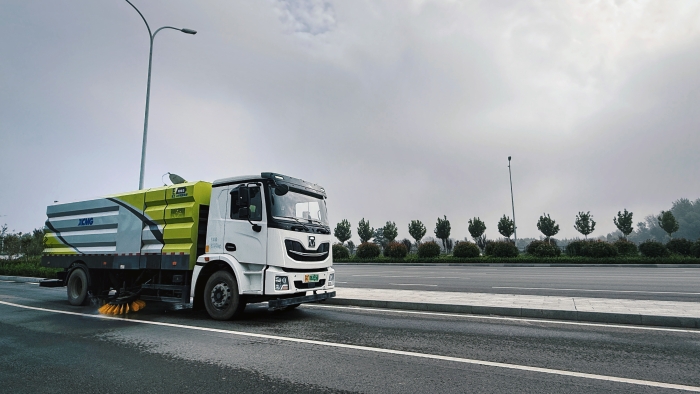 徐工18噸純電洗掃車并非單一場景的“專才”,而是多工況的“全能選手”。在人民路的作業(yè)中,它展現(xiàn)出三大核心適配場景: