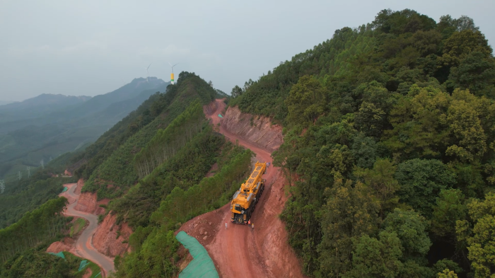在廣西崇山峻嶺中,徐工XCA4000輪式起重機(jī)憑借“6+2雙動(dòng)力”驅(qū)動(dòng)系統(tǒng),以402.5噸整車重量完成重載轉(zhuǎn)場(chǎng),在陡峭狹窄的山地中穩(wěn)健行進(jìn)。