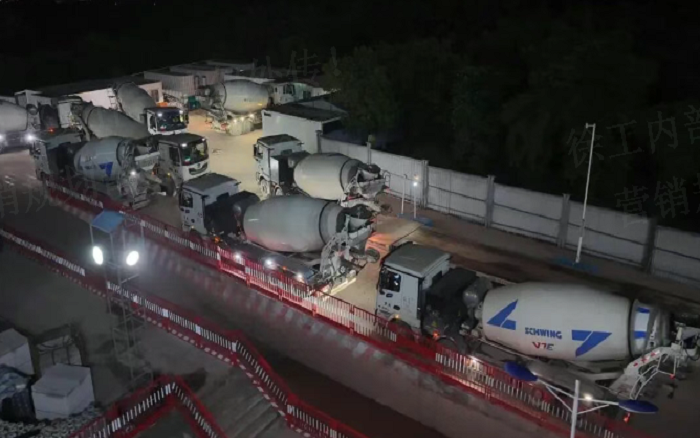 從精準(zhǔn)布料到高效輸送,徐工72米泵車與新能源攪拌車強強聯(lián)手,用硬核實力詮釋 “鋼鐵天團” 的夜間作戰(zhàn)實力,回應(yīng)客戶堅定選擇!