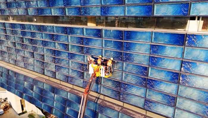 然而,將設(shè)計(jì)藍(lán)圖轉(zhuǎn)化為現(xiàn)實(shí),首先面臨的挑戰(zhàn)便是其獨(dú)特的外墻施工。建筑立面需安裝上萬塊特制琉璃板,每塊尺寸達(dá)2.5米×1米,重量驚人地接近380公斤,且厚度存在精密的漸變。如此龐大且沉重的建材,對(duì)安裝作業(yè)的精準(zhǔn)度、穩(wěn)定性與安全性都提出了極為苛刻的要求。