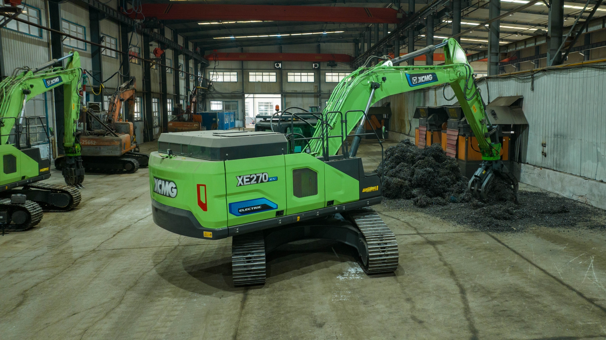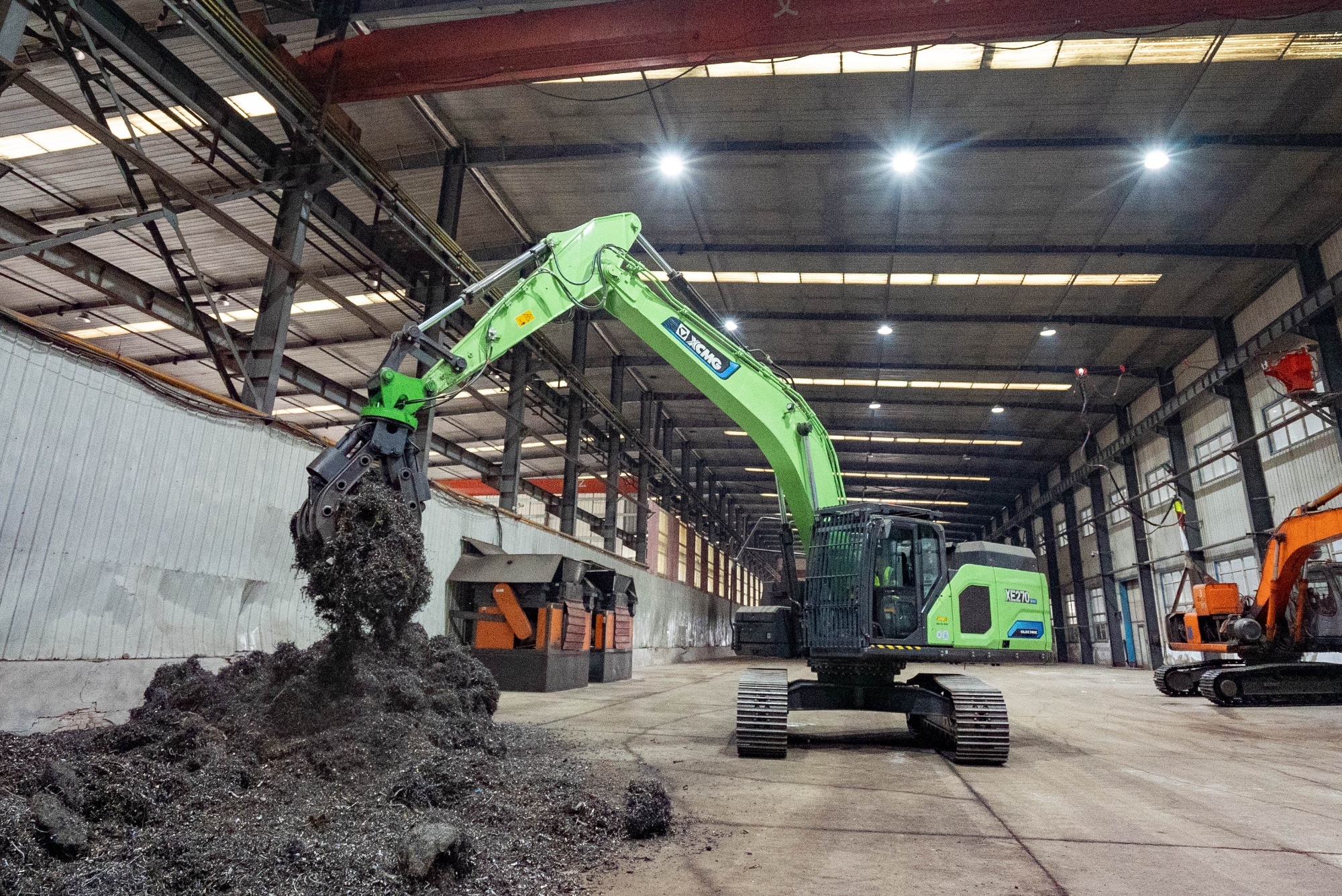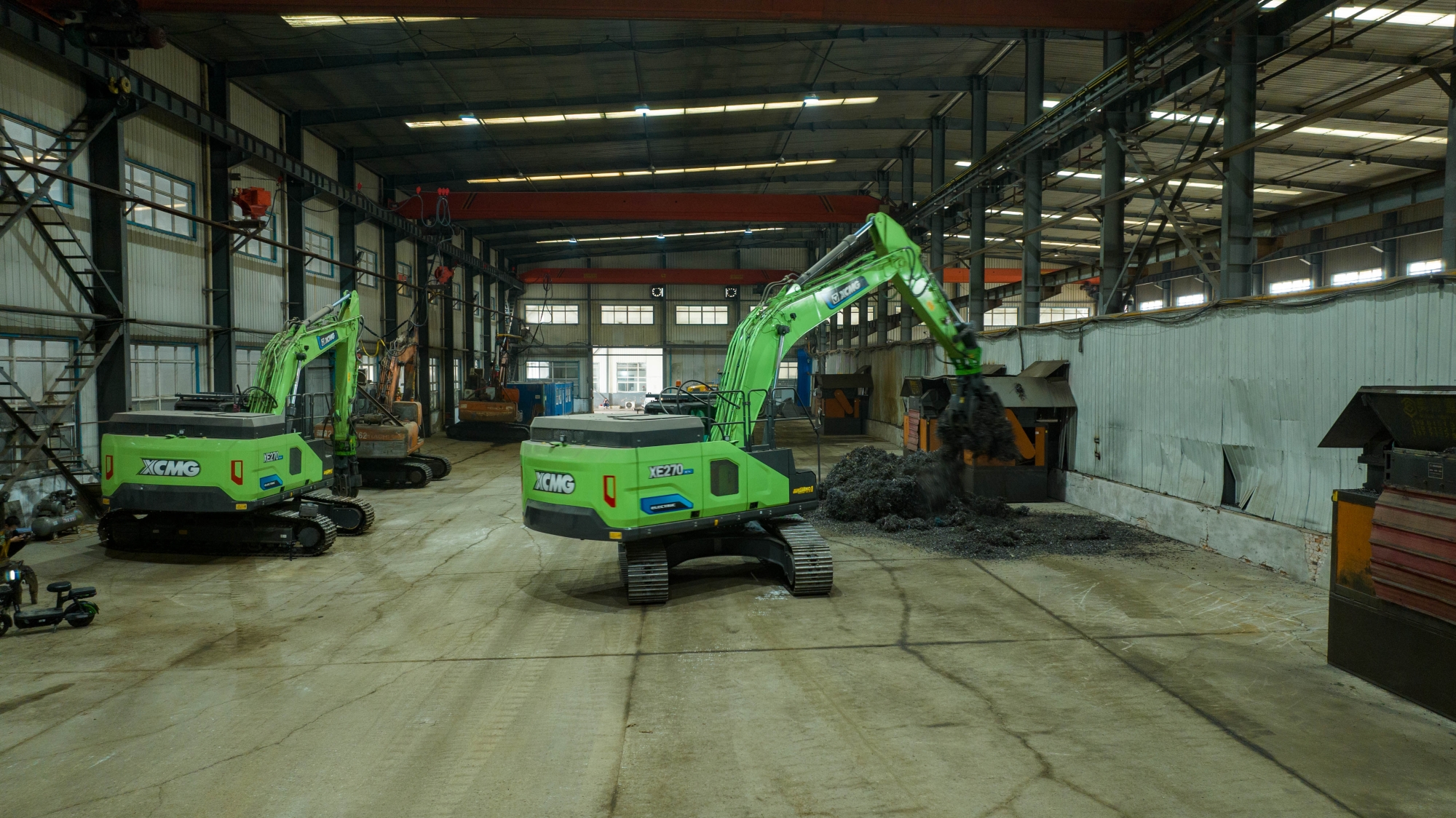 在河北唐山某鋼廠內(nèi),兩臺(tái)徐工XE270EV純電動(dòng)挖掘機(jī)正靈活地進(jìn)行鐵屑裝車(chē)作業(yè),與傳統(tǒng)燃油設(shè)備轟鳴、濃煙滾滾的場(chǎng)景不同,這里只有電機(jī)運(yùn)轉(zhuǎn)的低鳴和高效作業(yè)的節(jié)奏聲。