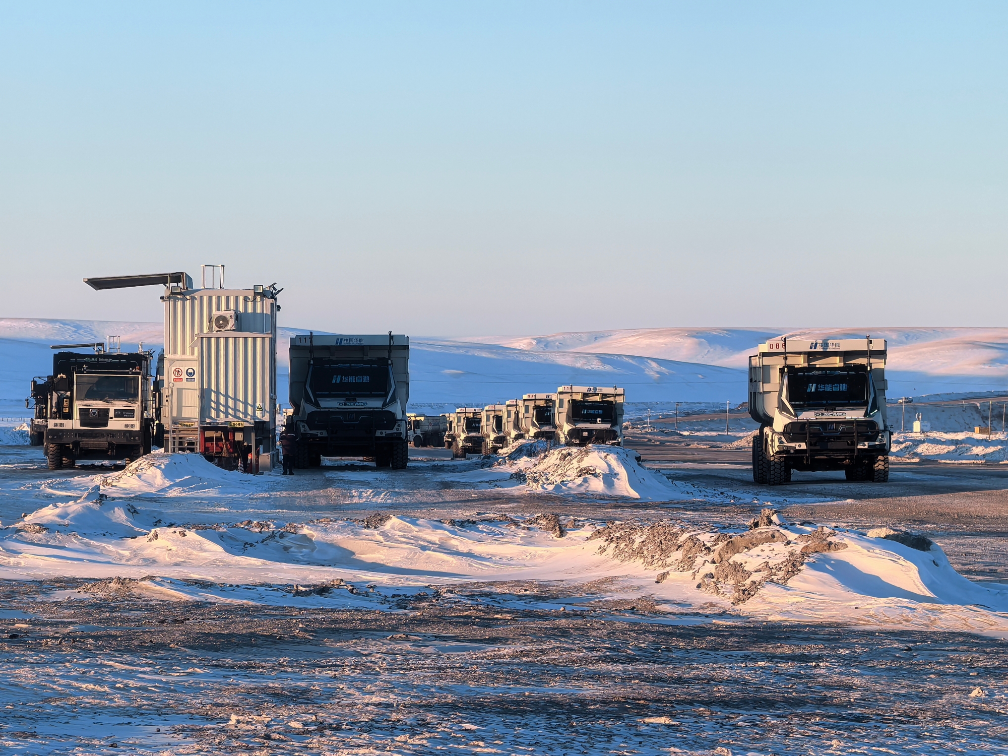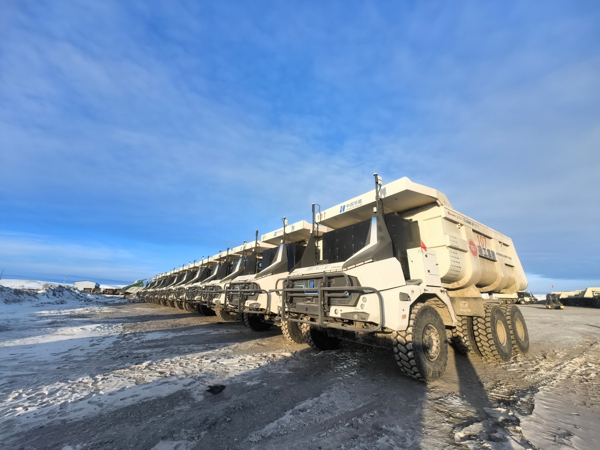 從夏日的綠草如茵到冬日的白雪皚皚,內蒙古華能伊敏露天礦的年均溫差超60攝氏度。12月,氣溫已降至零下30多度,白雪覆蓋的礦坑中,百臺無人純電礦卡正以“鋼鐵洪流”之勢穿梭前行。