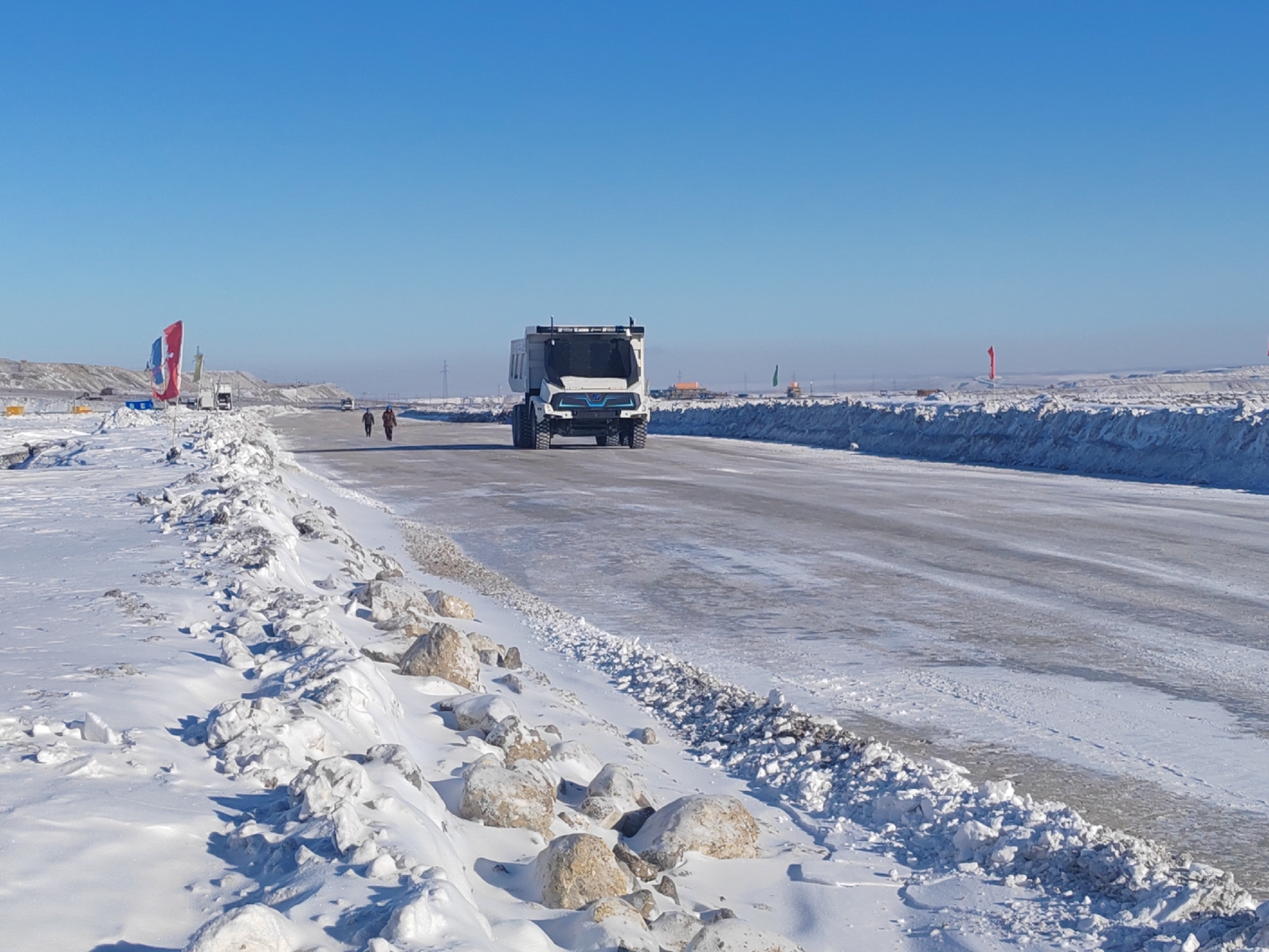 無人純電礦卡在車架、貨箱結構等方面采取特殊材質,且傳動、液壓、制動等系統(tǒng)經(jīng)過優(yōu)化調校,可輕松抵御-40℃的極寒挑戰(zhàn)。電池容量568kW·h,續(xù)航能力強。在持續(xù)低溫環(huán)境下,車輛三電系統(tǒng)性能穩(wěn)定,其具備的強大環(huán)境適應能力,有力保障了礦山生產(chǎn)在嚴冬季節(jié)的連續(xù)性與穩(wěn)定性,切實達成了全天候高效運營的目標。