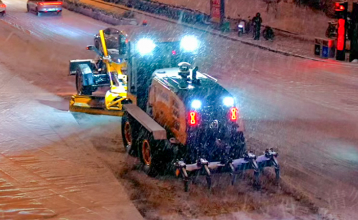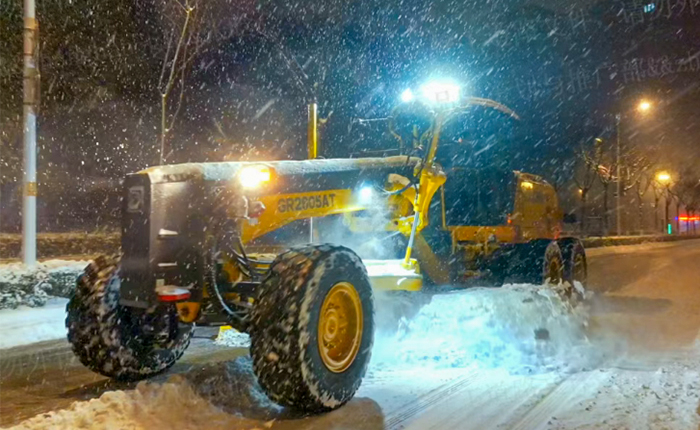 30臺徐工平地機根據(jù)應(yīng)急預(yù)案,編組成多個作業(yè)單元,重點攻堅城市主干道、高架橋梁、交通樞紐及陡坡路段。它們動力強勁、操作靈活,高效清除路面積雪,破除薄冰,迅速恢復(fù)通行。
