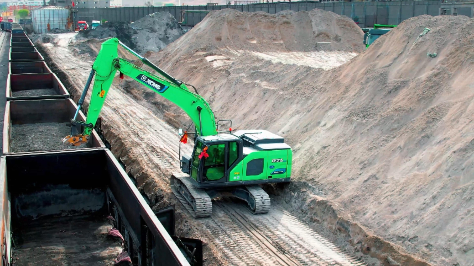 甘肅一處磷礦加工基地內(nèi),徐工XE215EV純電動(dòng)液壓挖掘機(jī)的“青山綠”格外醒目。它以綠色動(dòng)力在核心作業(yè)區(qū)高效運(yùn)轉(zhuǎn),既展現(xiàn)現(xiàn)代工程機(jī)械的智慧力量,更憑借全方位安全防護(hù)體系,為磷礦特殊工況筑牢安全防線。