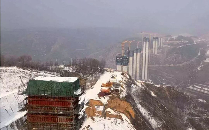 支黨河特大橋是目前國(guó)內(nèi)在建的連續(xù)鋼構(gòu)“主墩最高”橋梁工程,全長(zhǎng)1438米,最大橋梁最高185米,最大墩高175米。